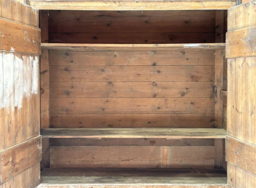 Up for grabs here is a stunning shaker style larder / pantry cupboard in antique pine. Very heavy and all in original condition. Probably from 40’s – 50′.