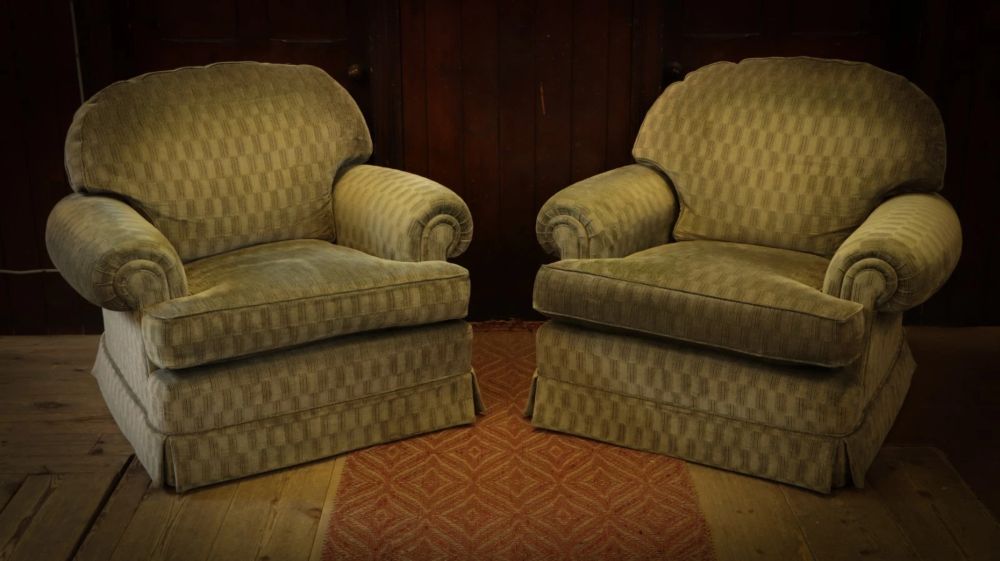 Duresta Waldorfe Rousseau Sofa & 2 Armchair Suite Olive Green Textured Jacquard