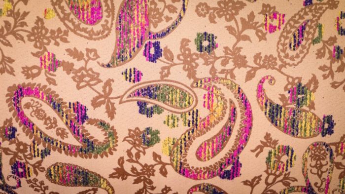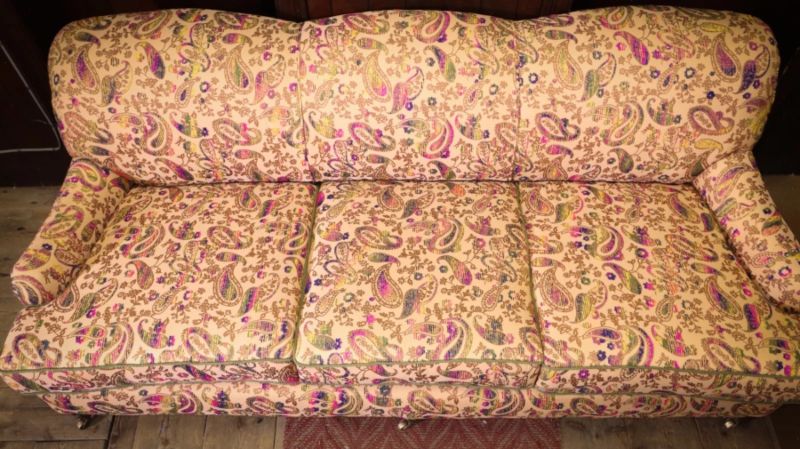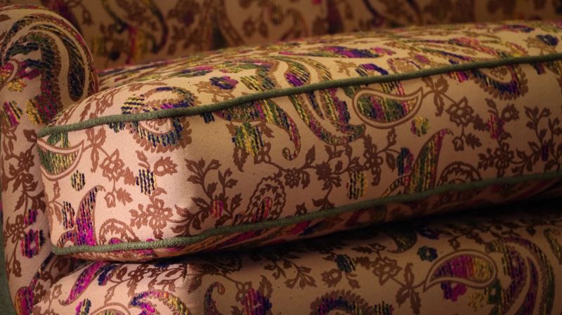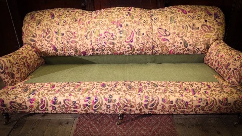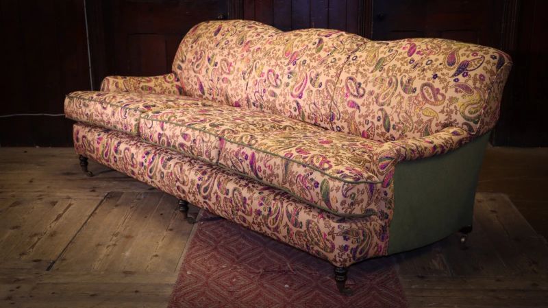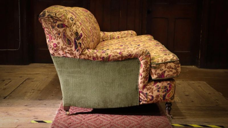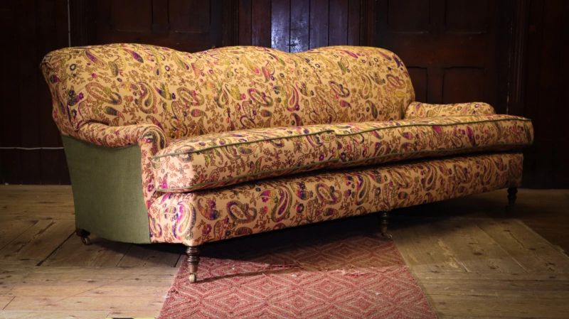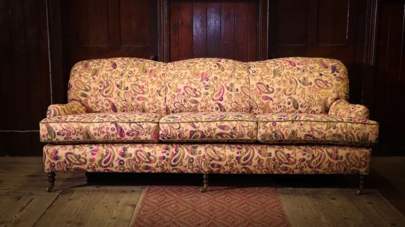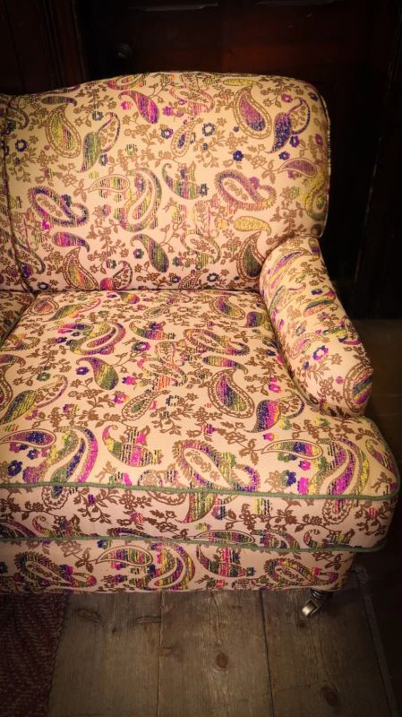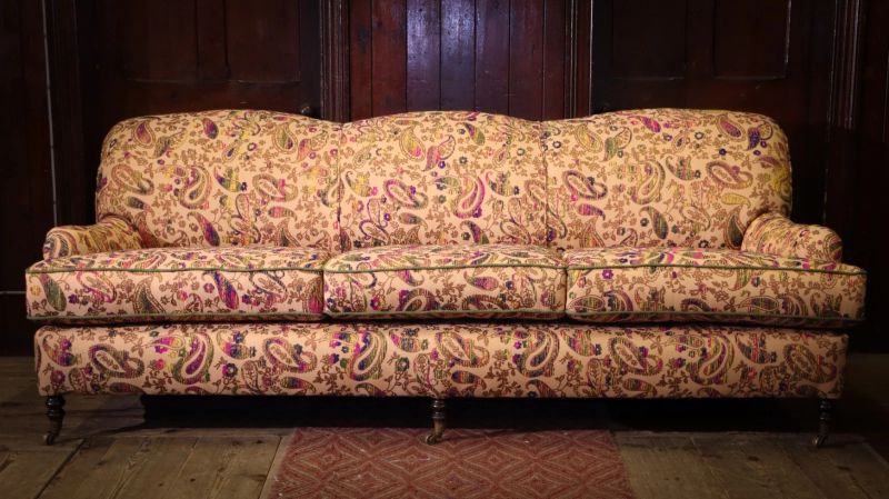 Up for grabs here is a sublime Large 3 seater Standard Arm Signature George Smith sofa in stunning multicoloured embroidered paisley.