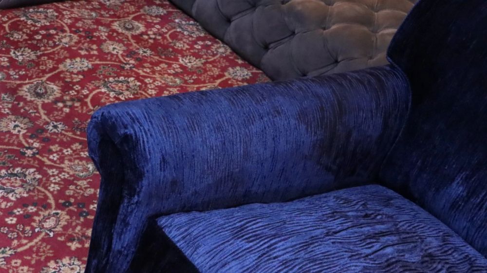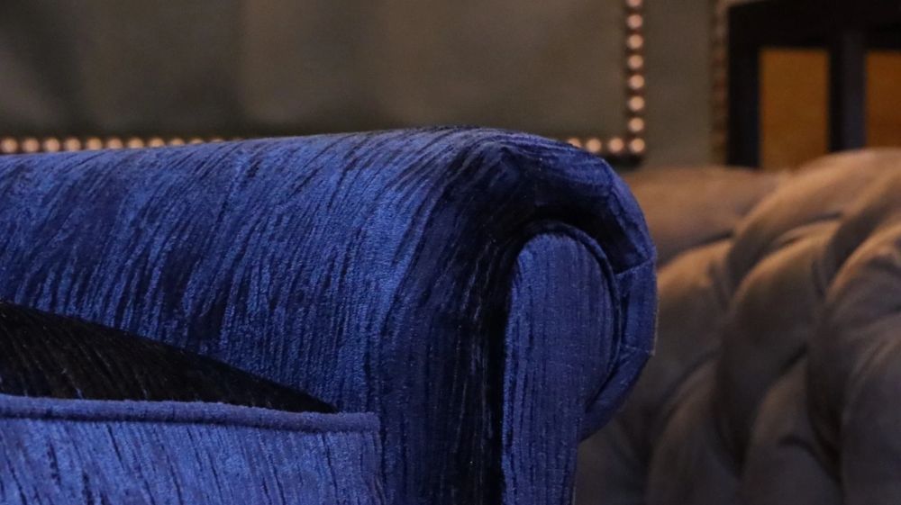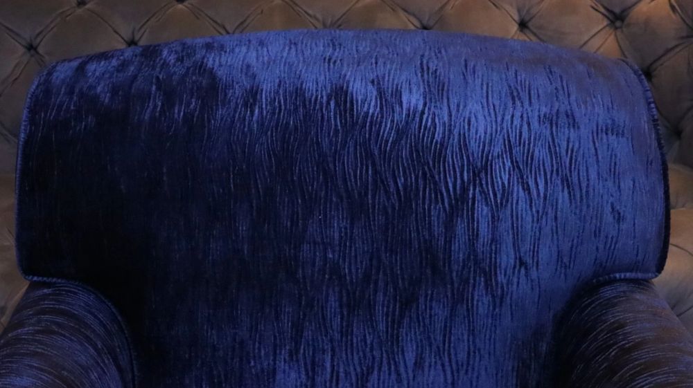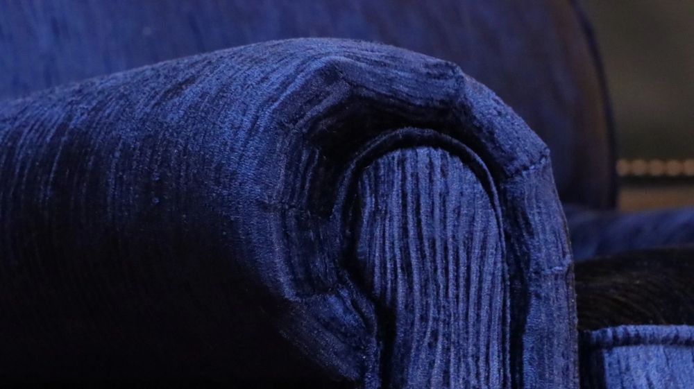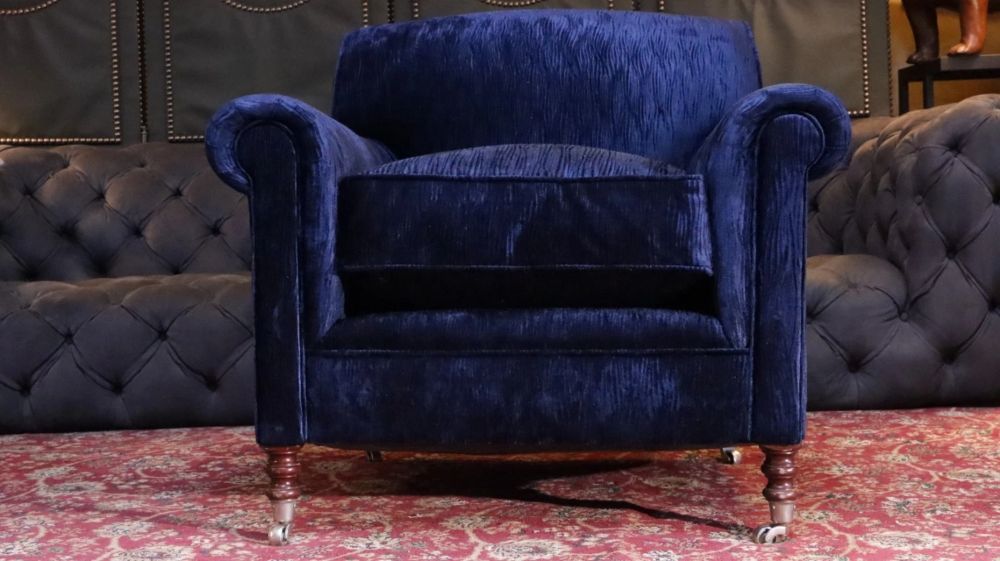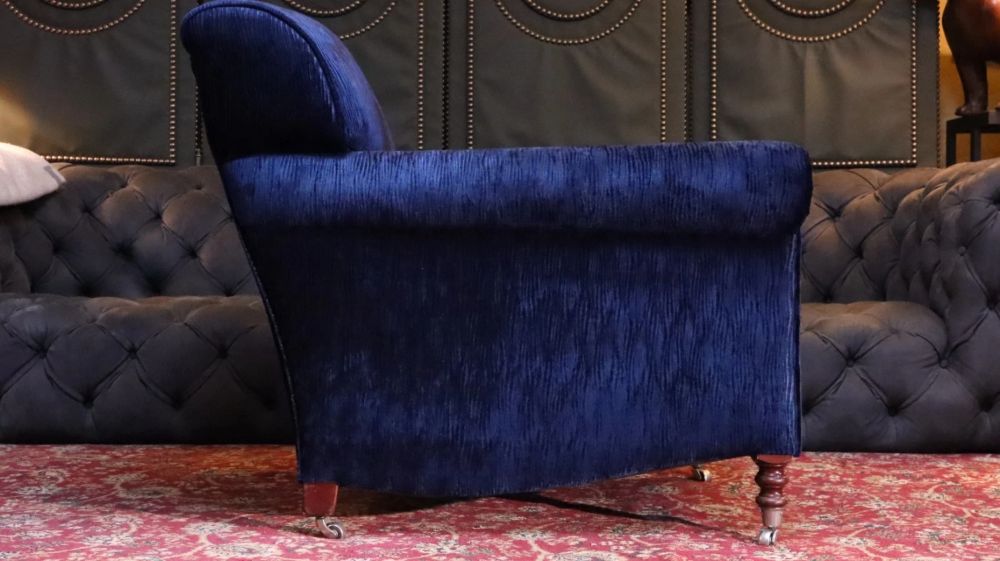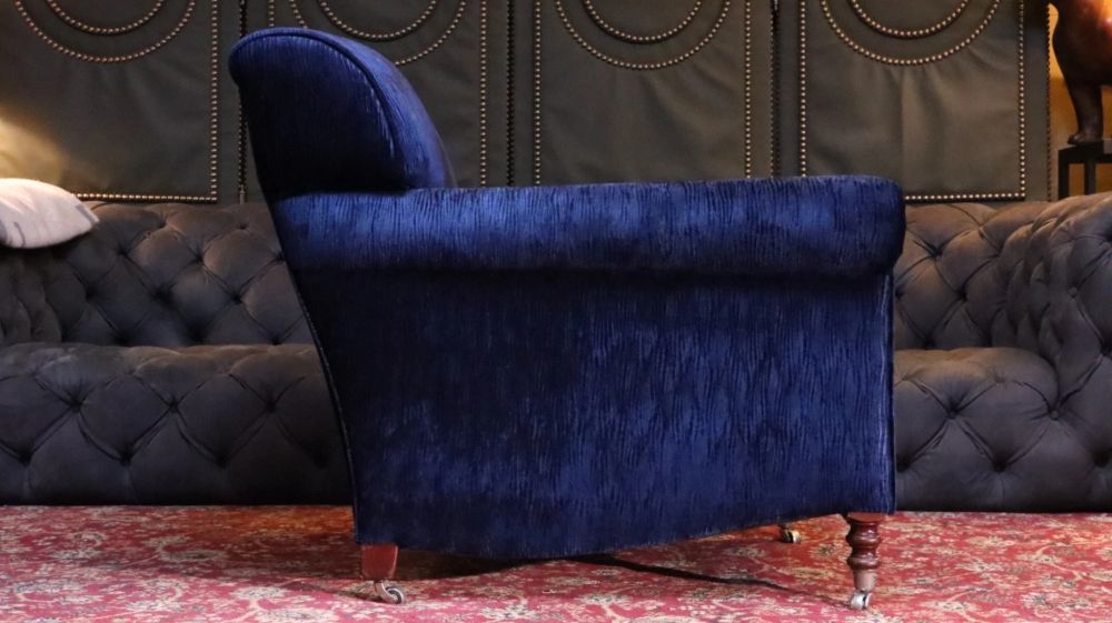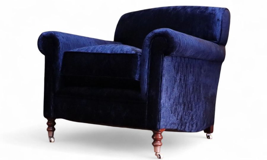 George Smith Full Scroll Arm Signature Armchair Navy Blue Villandry Velvet Del