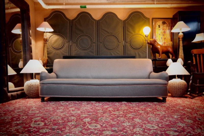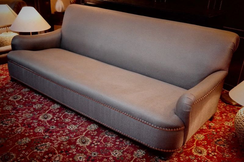 Up for grabs here is a brilliant George Smith Jules Sofa with fixed seat in beautiful grey woven fabric.