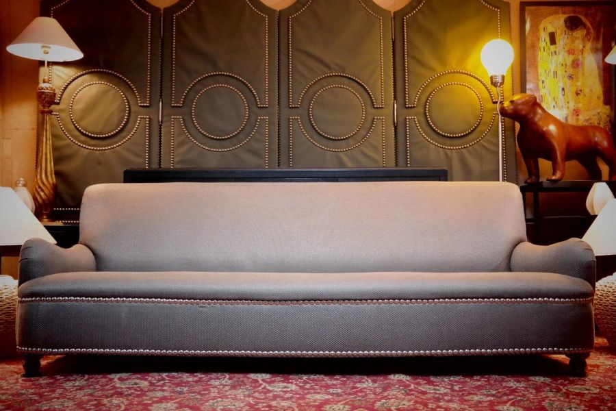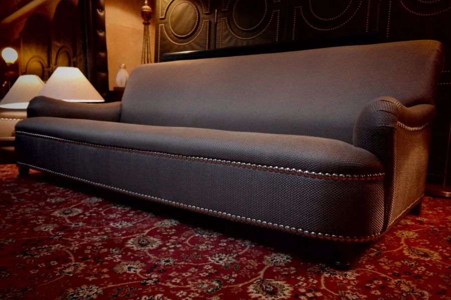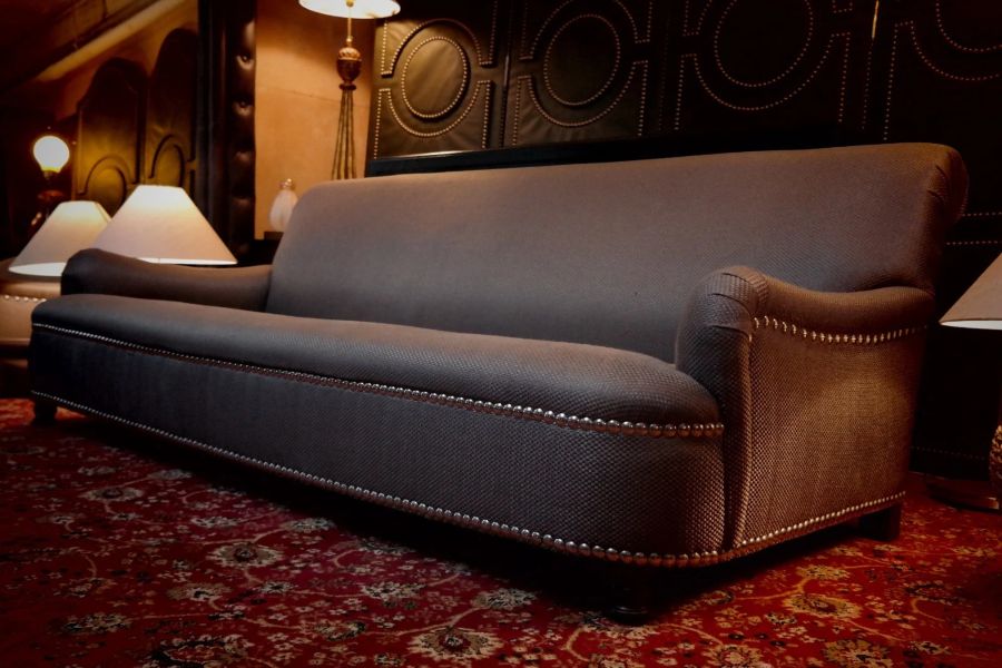 George Smith Jules Sofa with Fixed Seat Club Sofa In Grey Fabric Rrp £11900