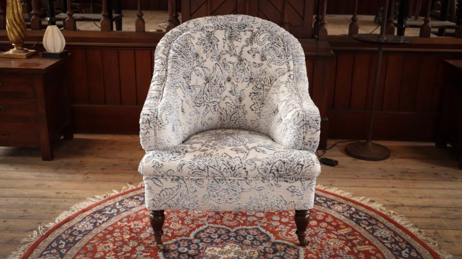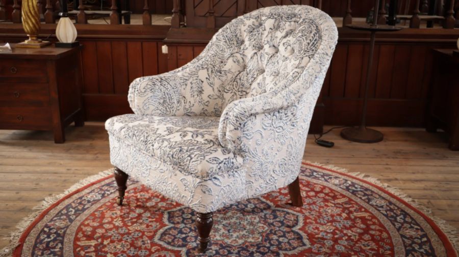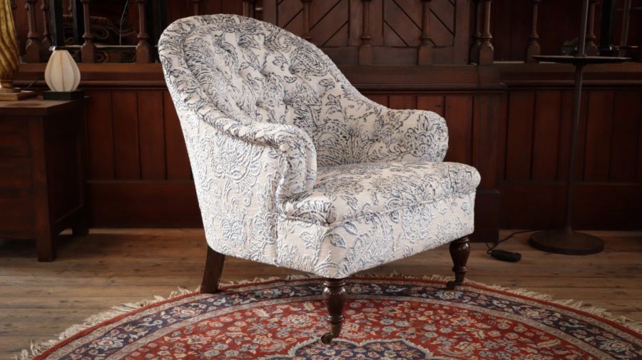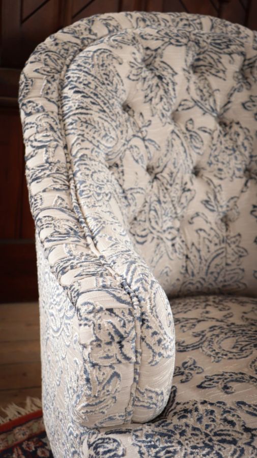 Deceptively roomy, the Markham Chair is a beautiful chair with beautiful button and ruche detailing.