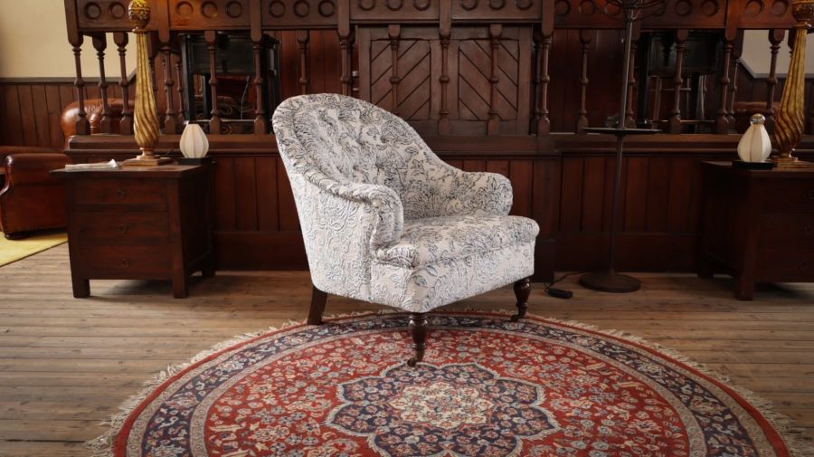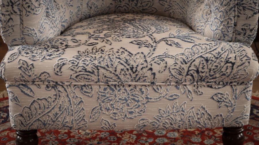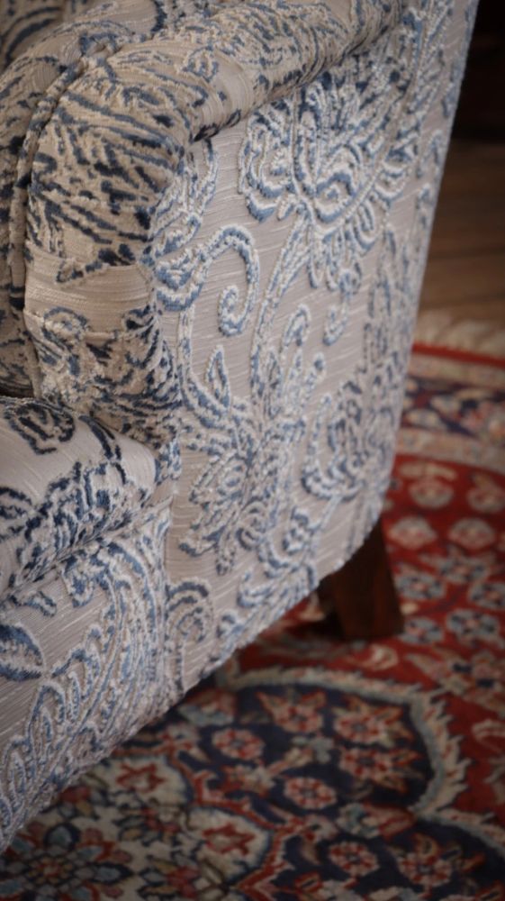 Up for grabs here is a stunning George Smith Markham Armchair in beautiful Jp baker Paisley hard wearing chenille linen type fabric.