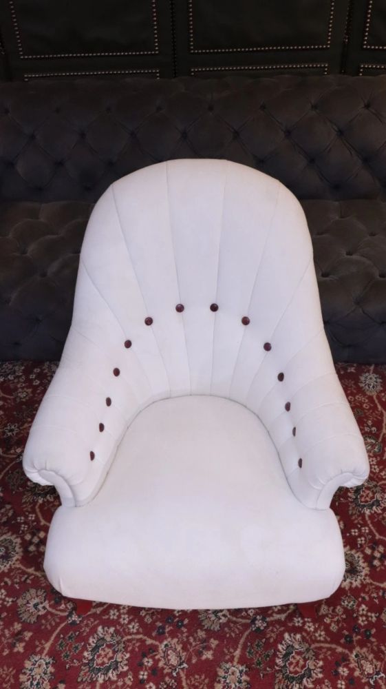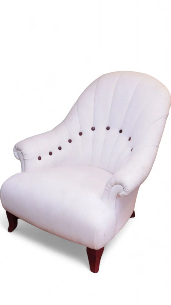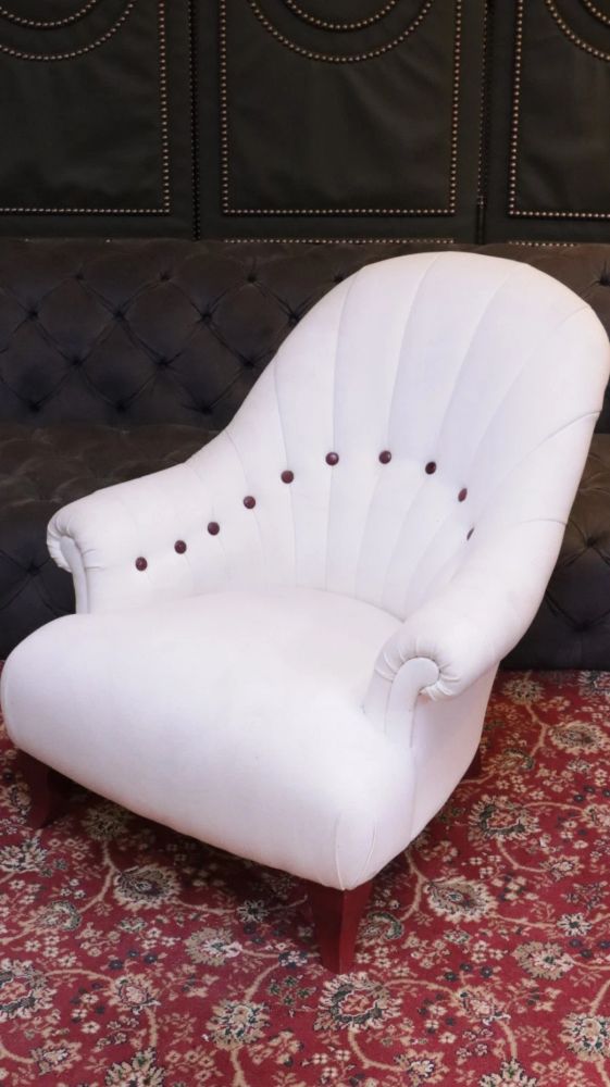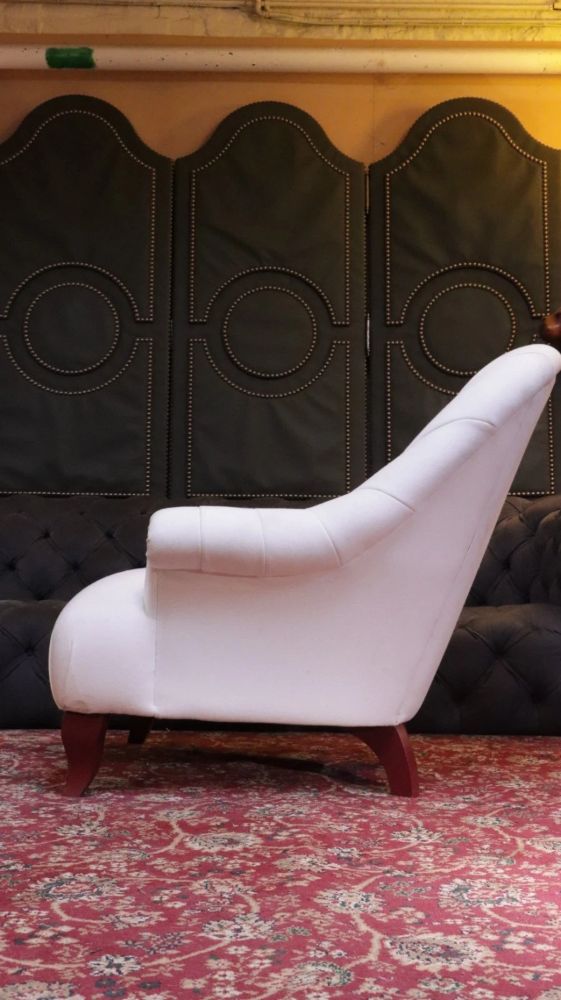 Up for grabs here is a stunning and rare John Sankey Baudelaire classic slipper accent armchair in white linen. There are no rips and tears and the chair is in excellent condition. We would recommend a clean.