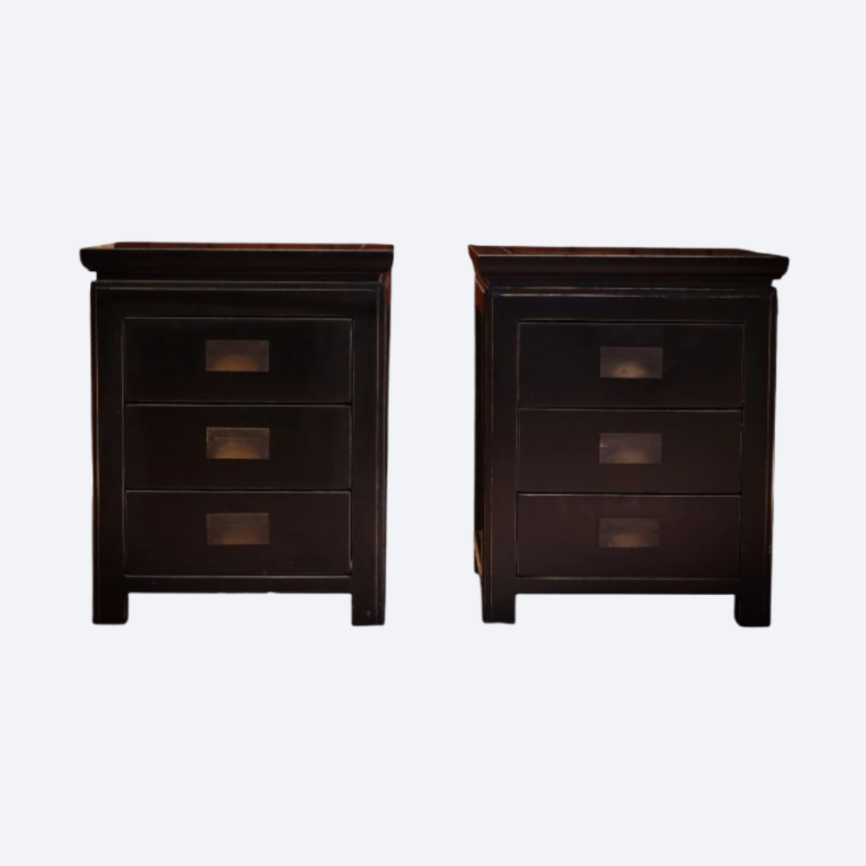 Pair Lombok Seba Bedside Tables Drawers Solid Indonesian Teak Mahogany Del