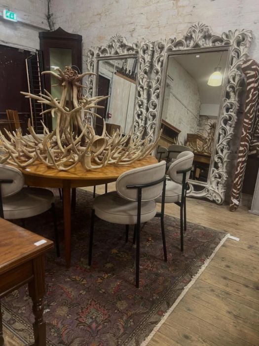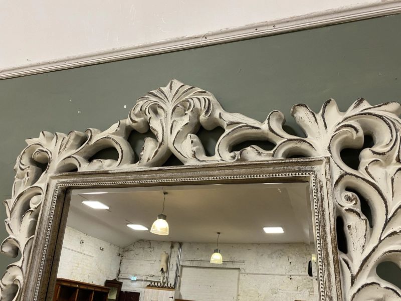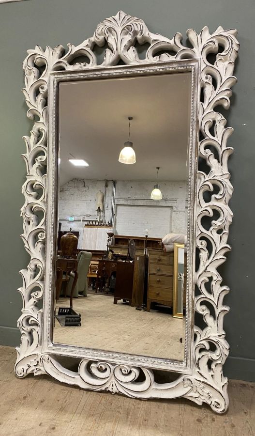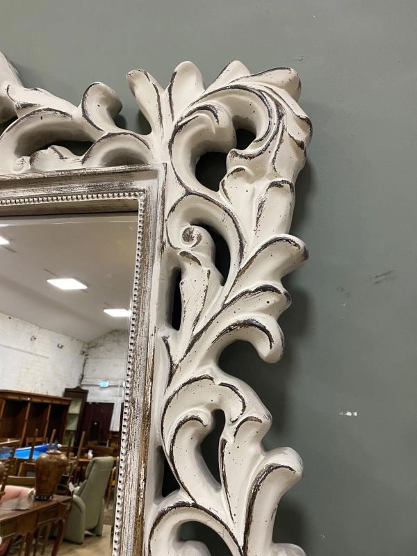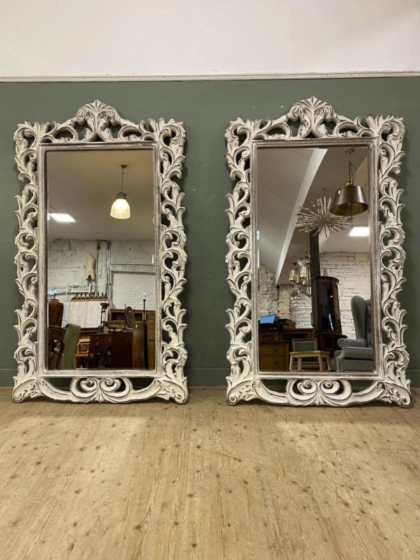 Up for grabs here is an impressive contemporary floor-standing pier mirror, with Rococo style scrolling foliate motifs to frame, enclosing rectangular bevelled mirrors. An exceptionally beautiful pair of mirrors that will make any room elegant and tasteful.