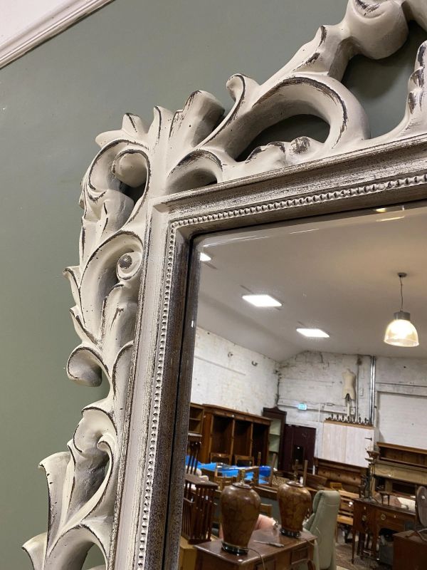 Pair Rare Perfect Antique Vintage French Rococo White Full-Length Floor Mirrors