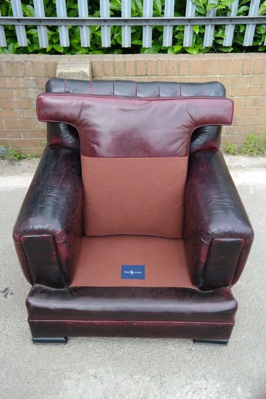 Stunning Rare Ralph Lauren Errol Armchair Footstool leather Burgundy Rrp£12000