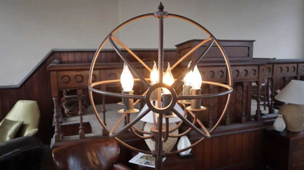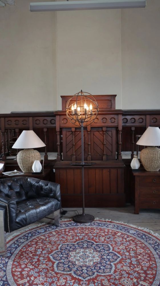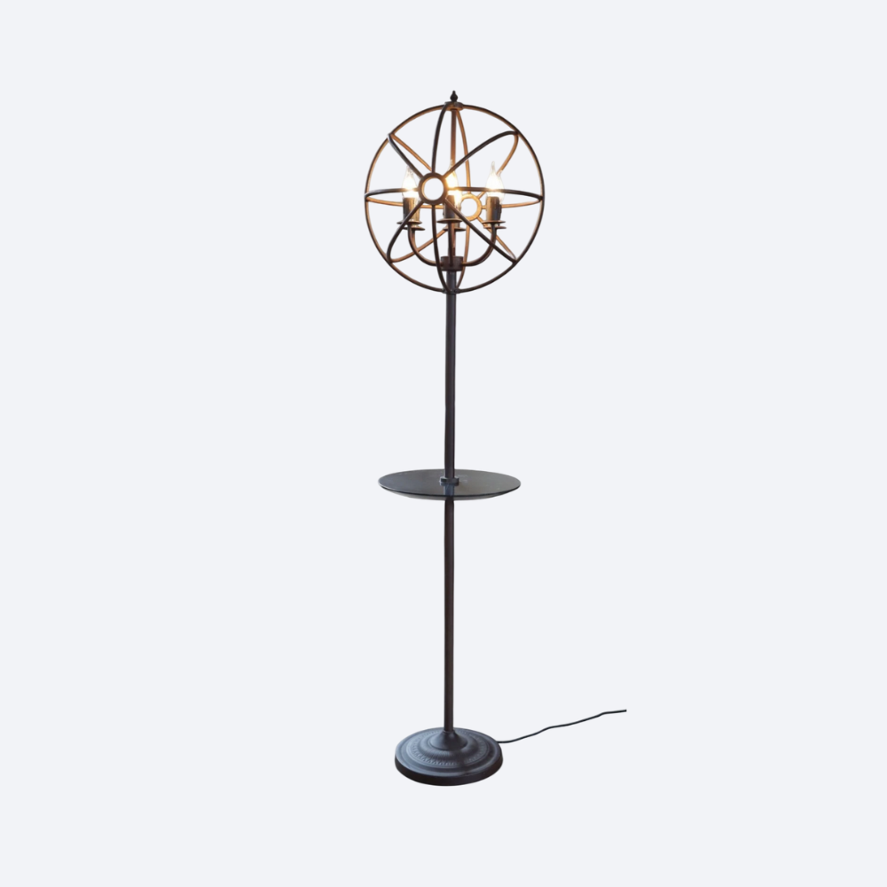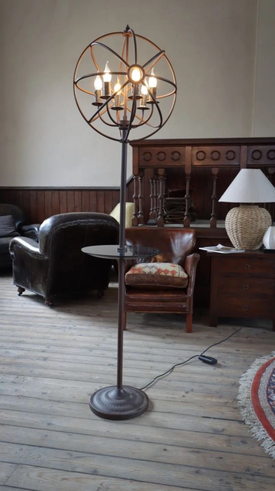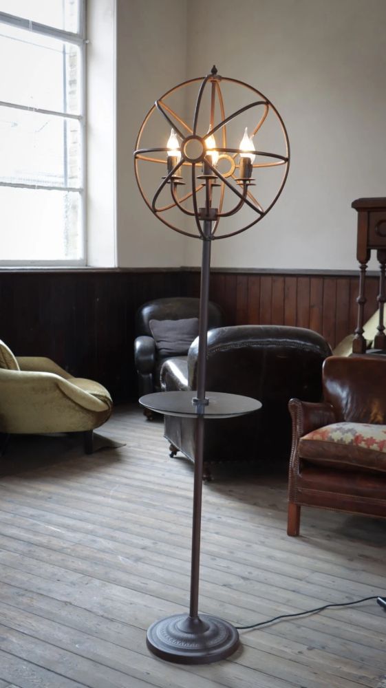 Stunning Timothy Oulton Gyro Floor Lamp With Dumb Waiter Shelf Antique Rust