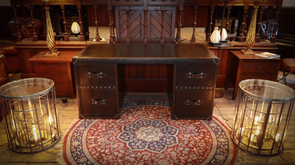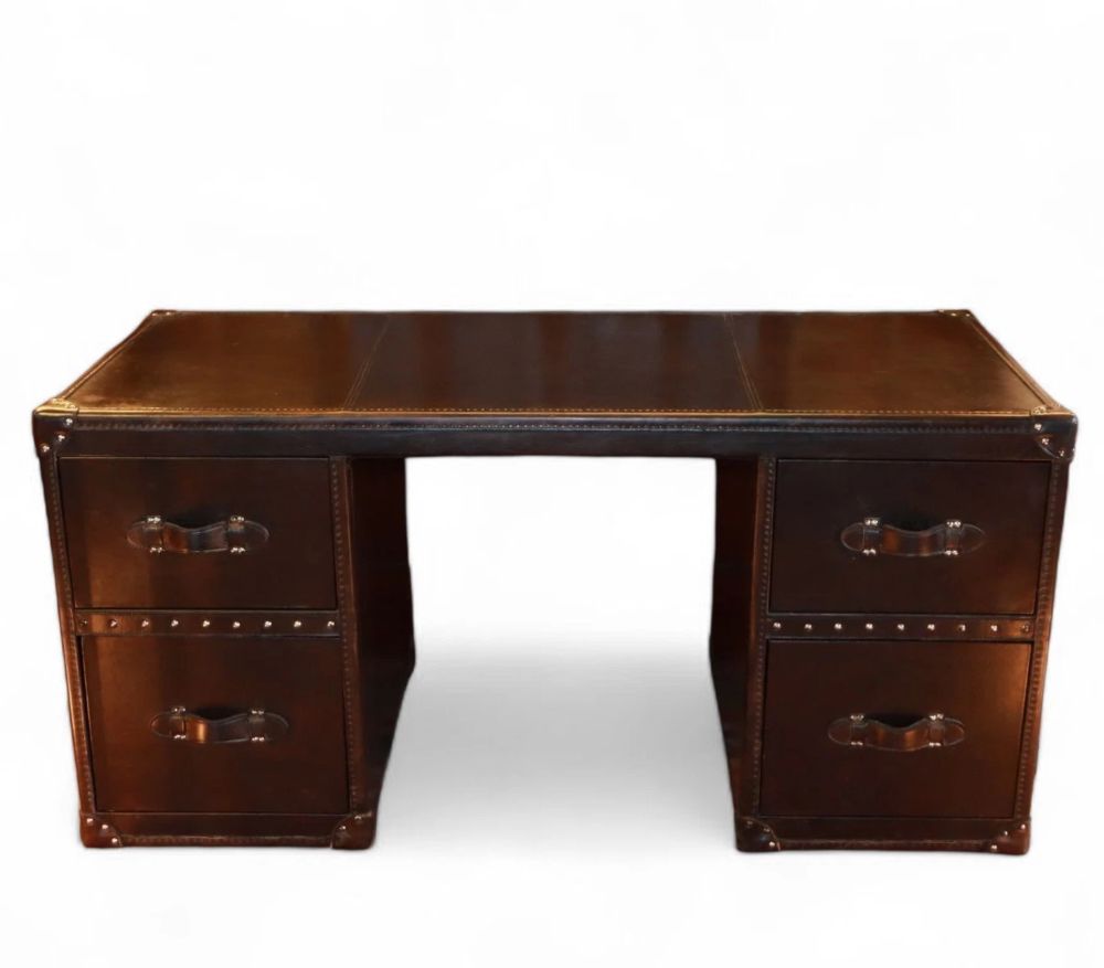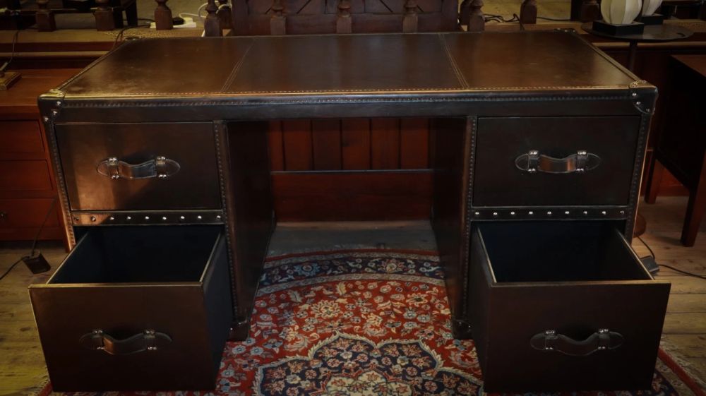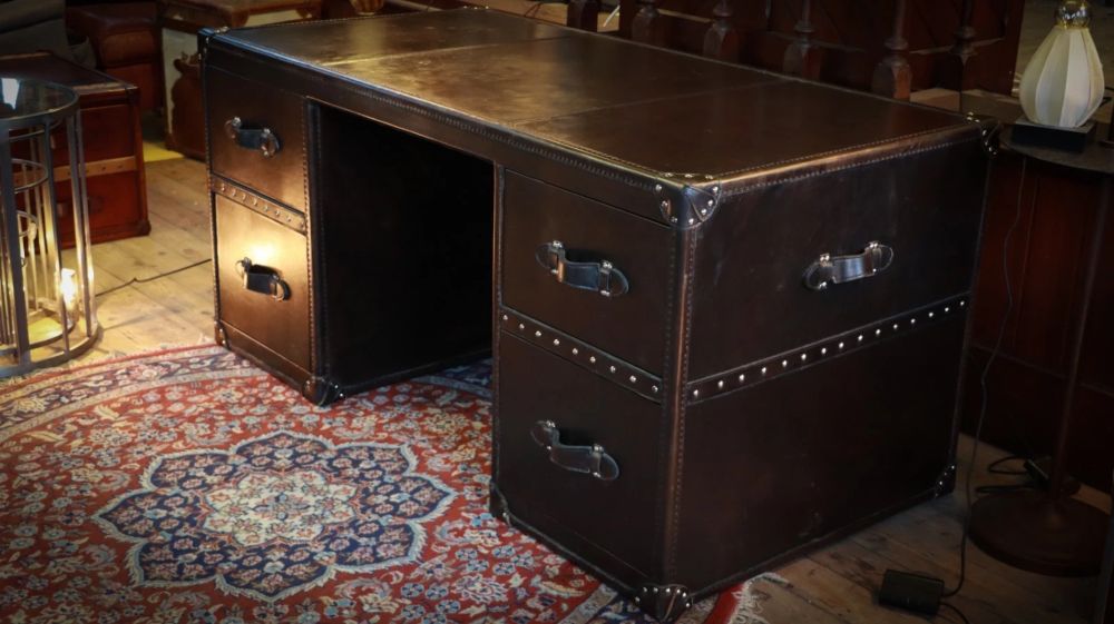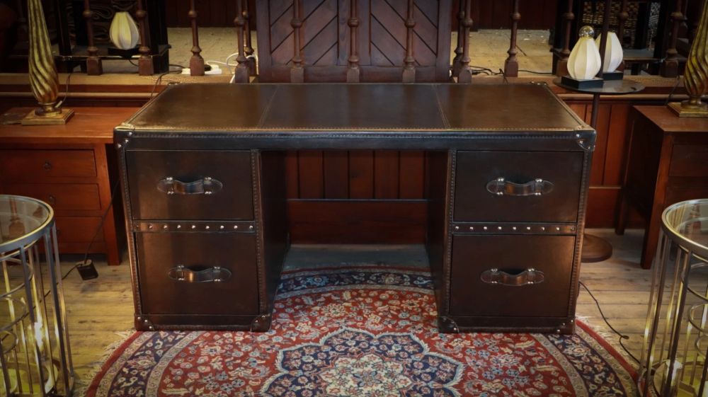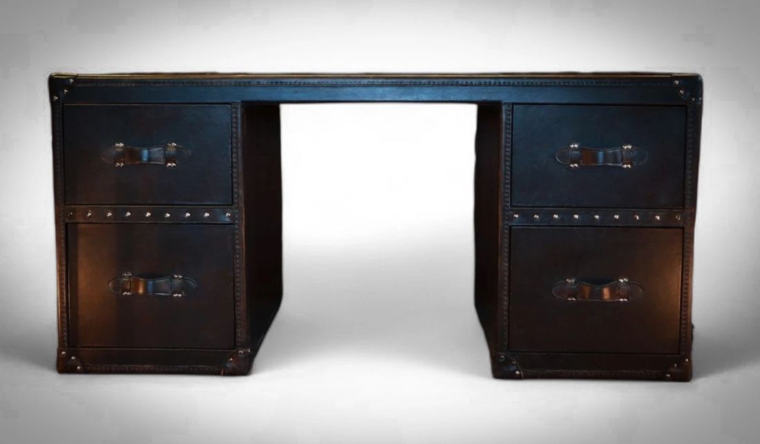 Stunning Timothy Oulton Halo Stoneyhurst Mayfair Leather Desk Destroyed Black