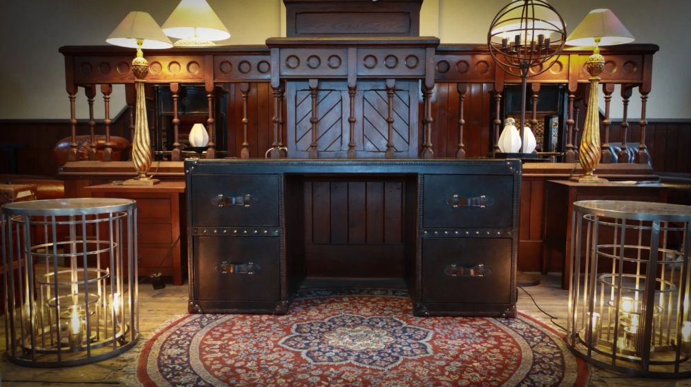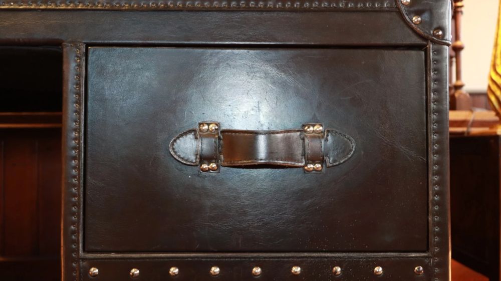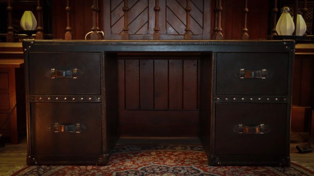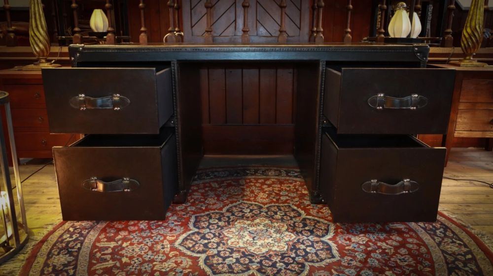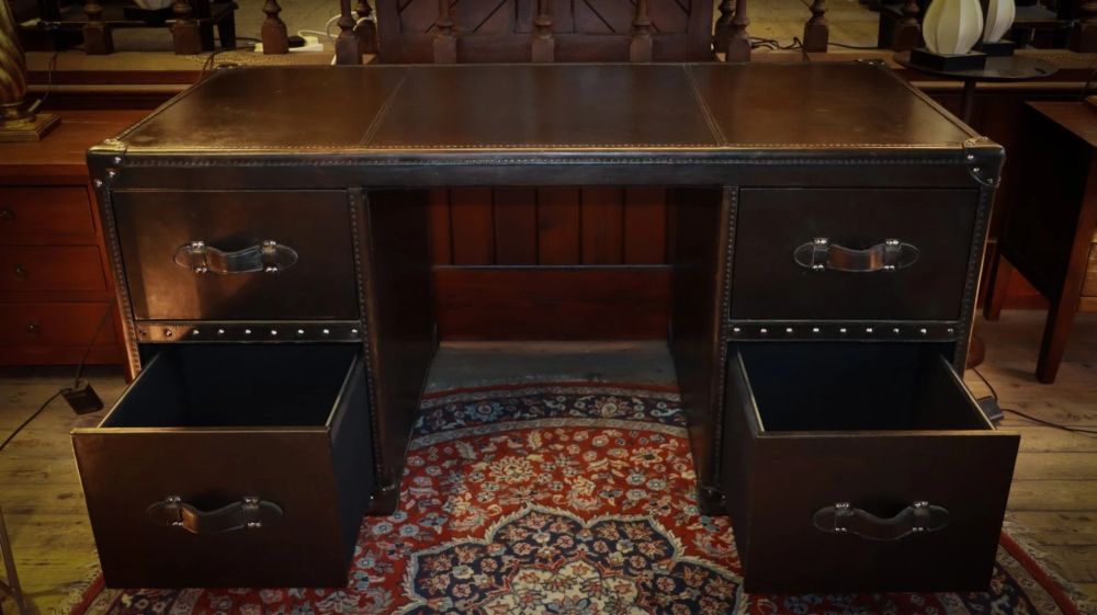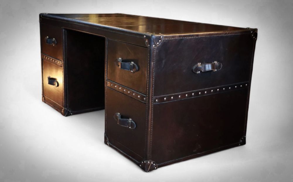 Stunning Timothy Oulton Halo Stoneyhurst Mayfair Leather Desk Destroyed Black