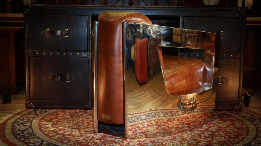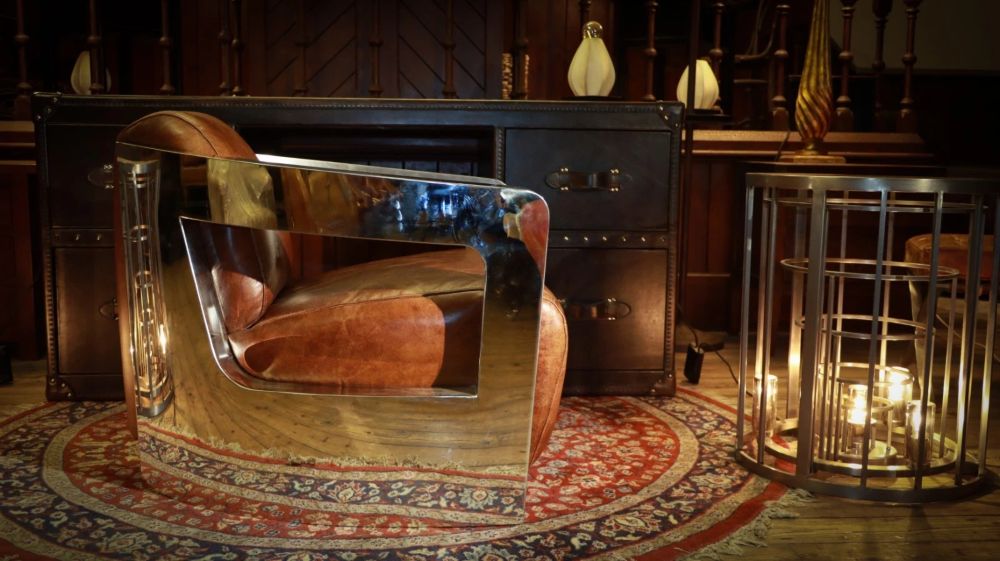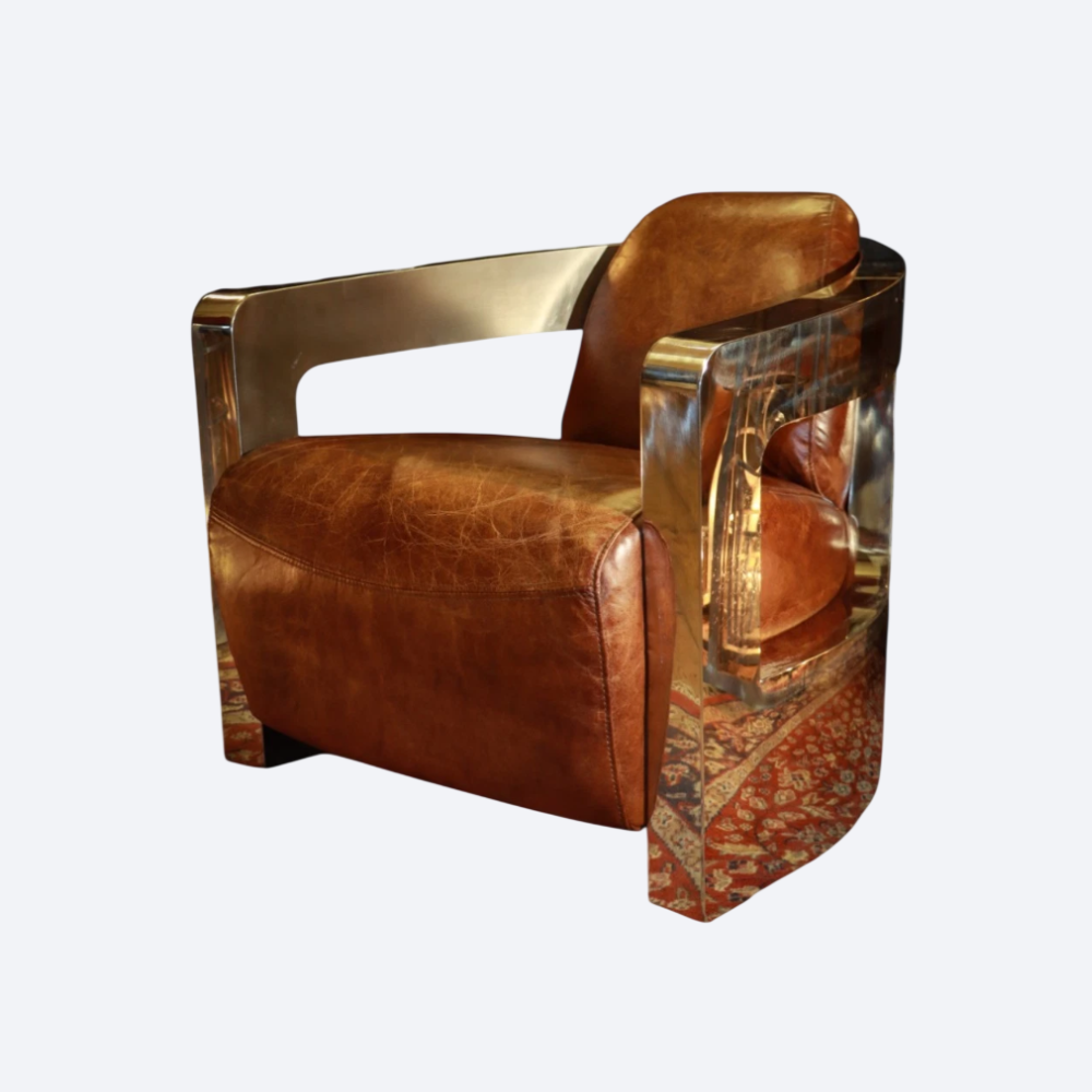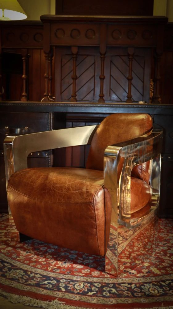 Up for grabs here is a stunning pair of armchairs by Timothy Oulton Halo in Chromed Steel and Leather the larger chair have beautiful leather and riveted aluminium back.