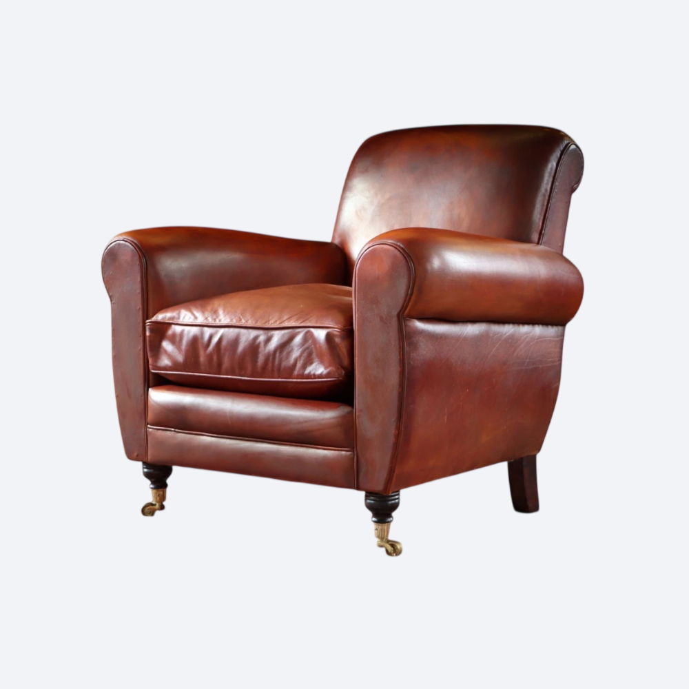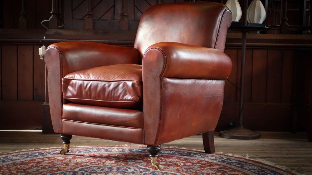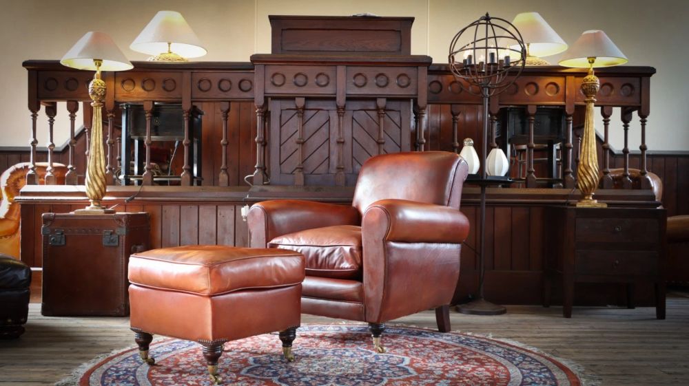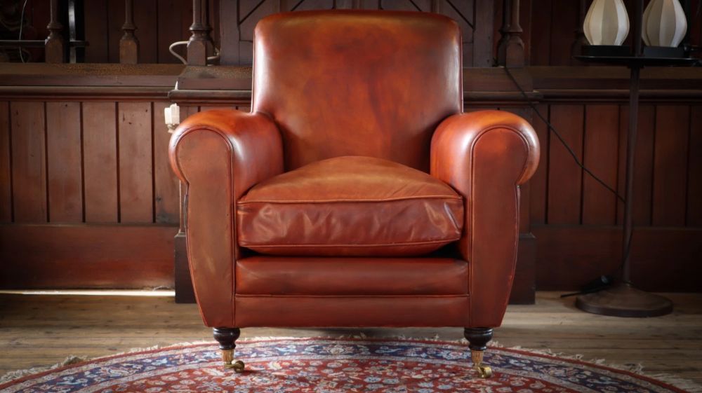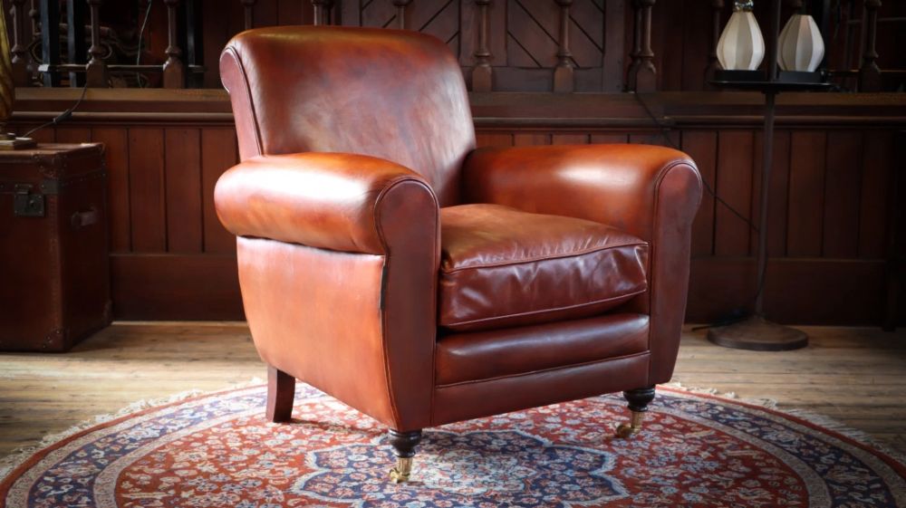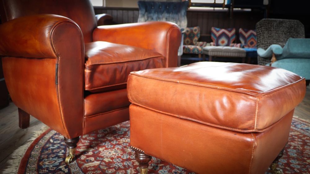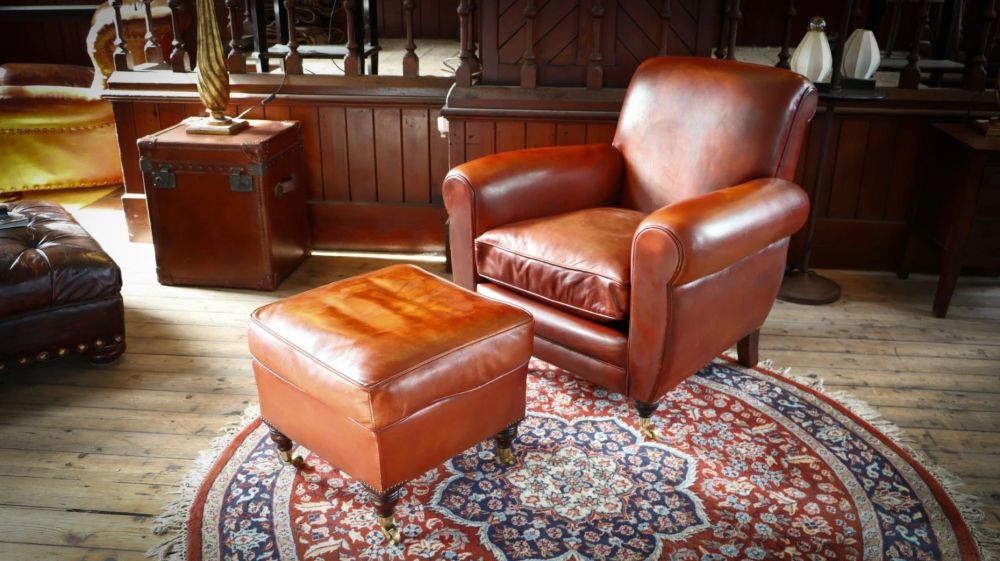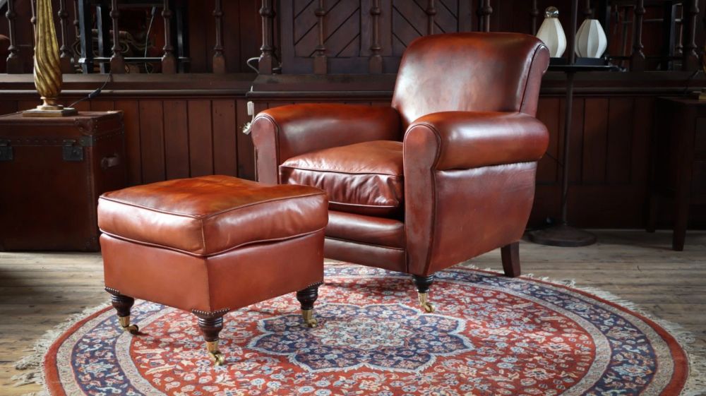 Superb Chairs Of Bath Duras Club Leather Armchair & Footstool Antique Saddle Tan