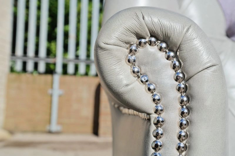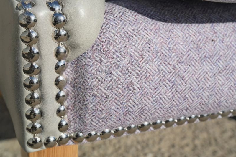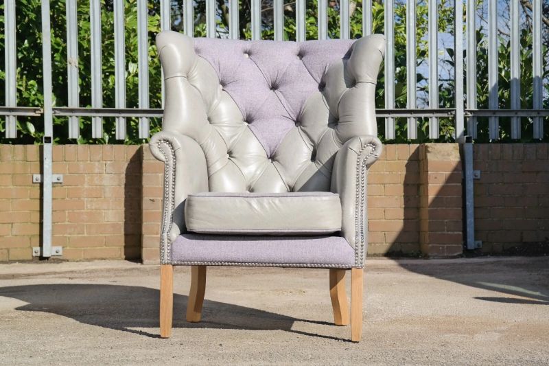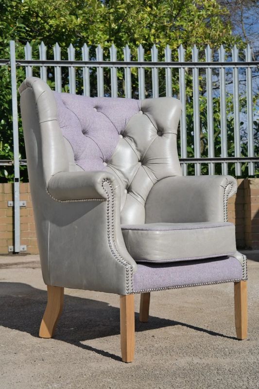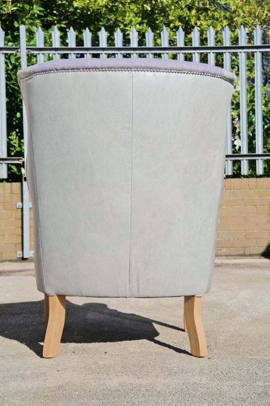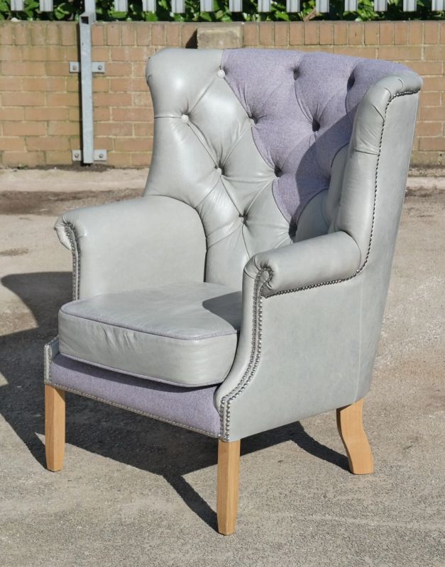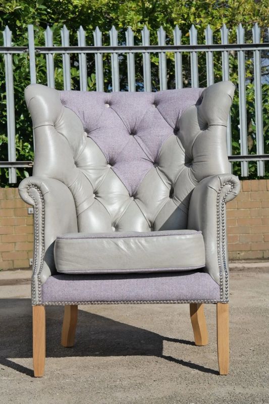 Superb Tetrad MacKenzie Leather & Tweed Chesterfield Armchair Grey Del