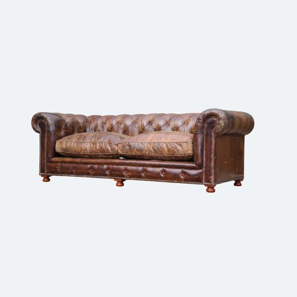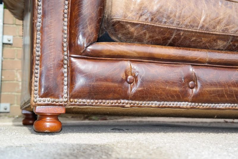 Superb Timothy Oulton Westminster Feather 2.5 Seater Leather Sofa Vintage Cigar