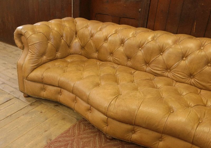 The Serpentine sofa is a fully buttoned-up Chesterfield style with elegant contours and classic hand-tufting. Named after the Serpentine river in England, due to its languid curve of the front seat, which lends a softer, more femininesilhouette. A timeless addition to glamorous interiors.